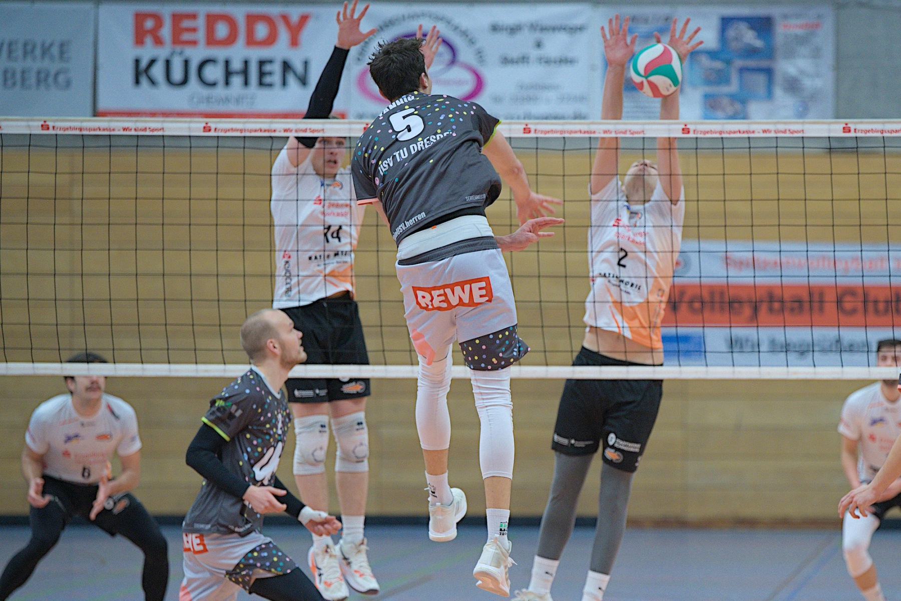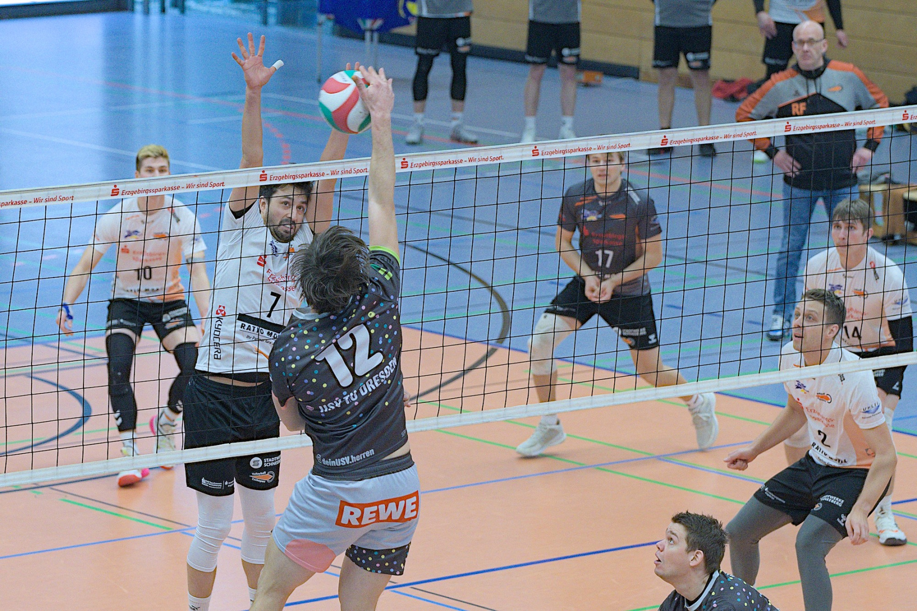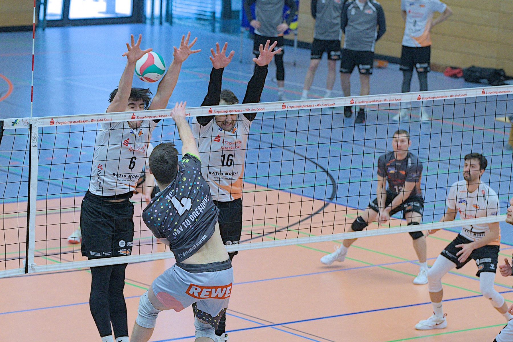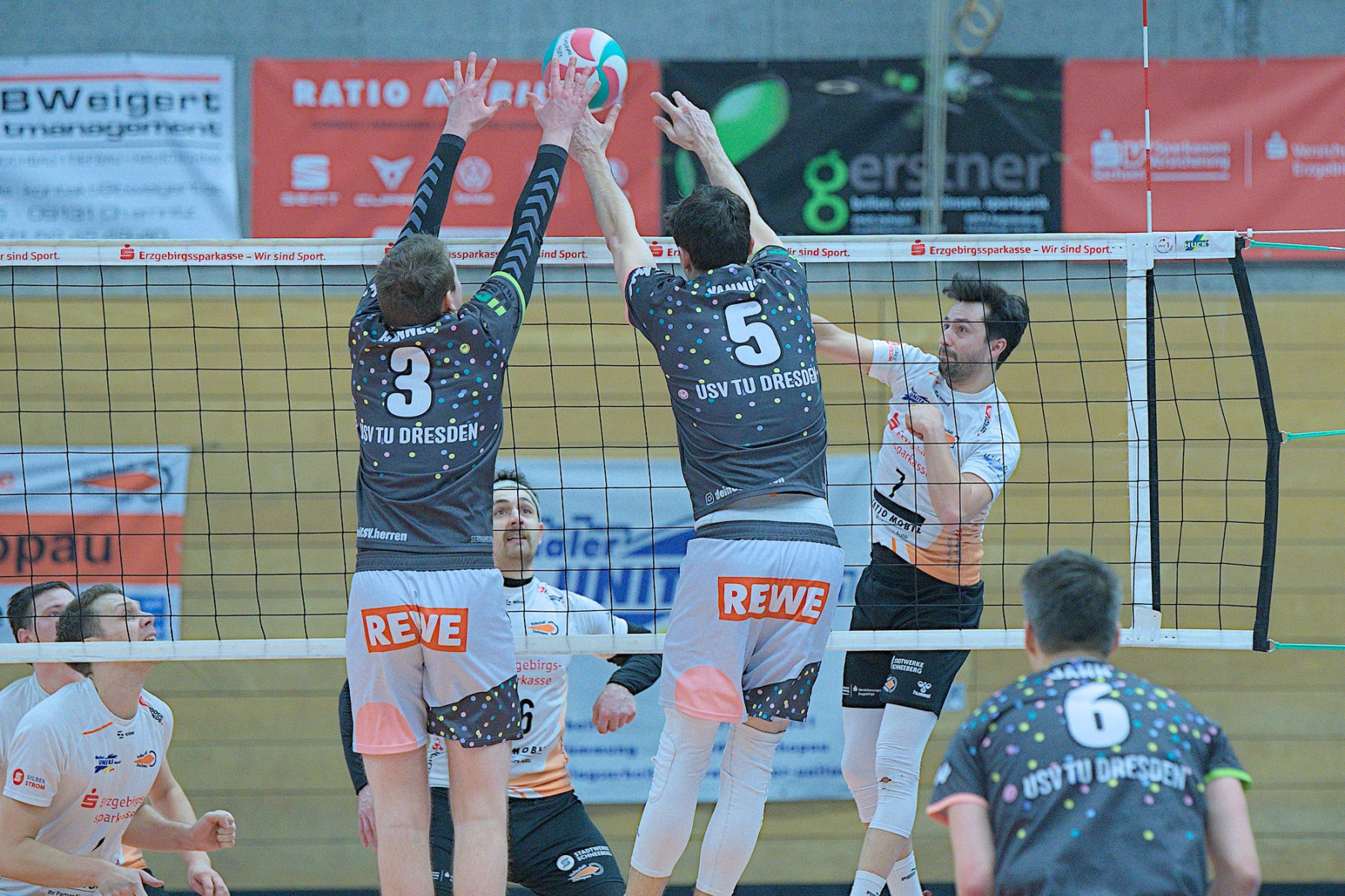 Trotz ungewöhnlicher Zeit und bevorstehendem Handball-EM-Finale versammellten sich ca. 150 Volleyballenthusiasten in der VC-Arena zum vermeindlichen Spitzenspiel der Regionalliga Ost der Männer. Mit dem USV TU Dresden reiste immerhin der aktuelle Zweite der Liga an. Was die Tabellenposition allerdings nicht aussagt ist, dass die diesjährige Liga vom Leistungsvermögen der Mannschaften her ein ziemliches Zerrbild wiedergibt. Mal abgesehen vom SV Reudnitz, der einsam seine Kreise zieht und 14 seiner bisherigen 15 Pflichtspiele gewonnen hat, kann eigentlich noch jede Mannschaft mit dem Abstiegsgeschäft zu tun haben, so ausgeglichen stellt sich das aktuell dar.