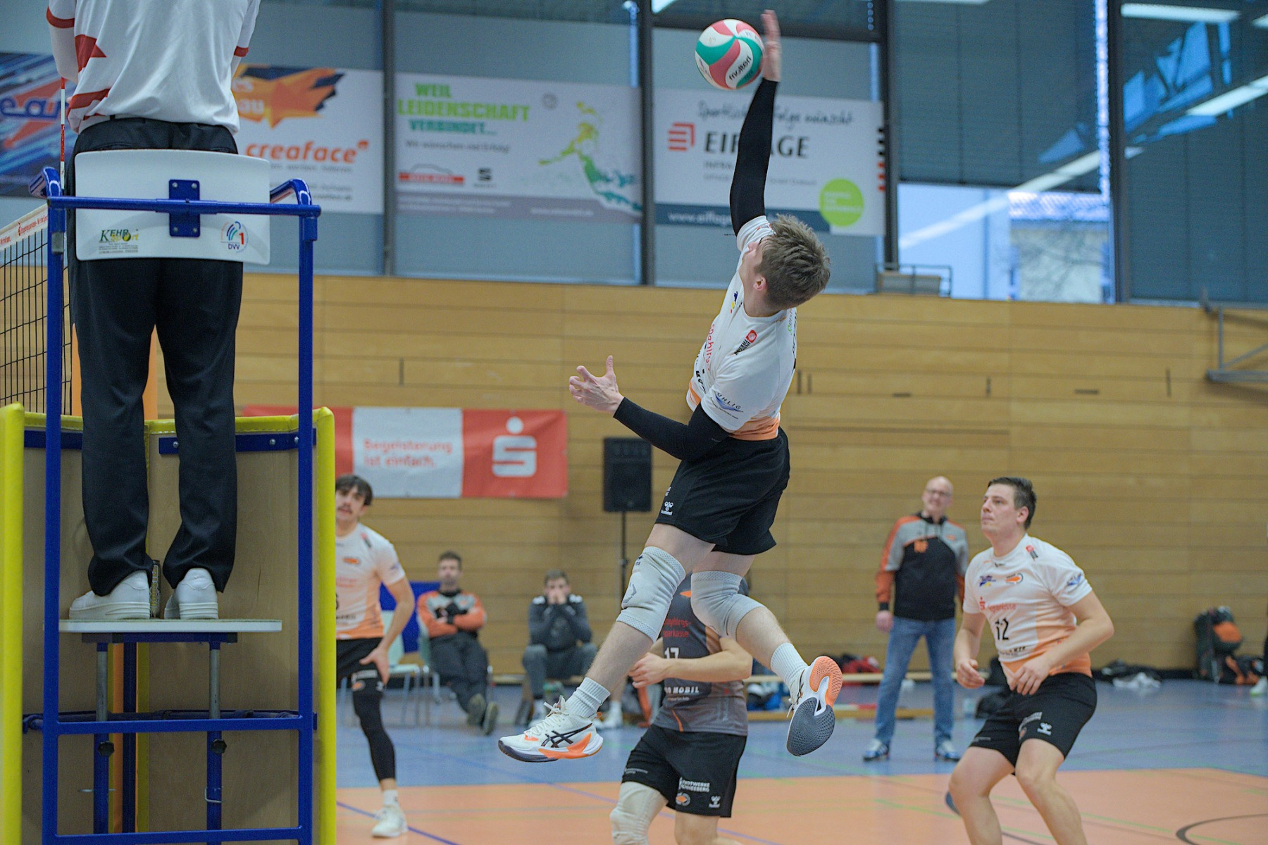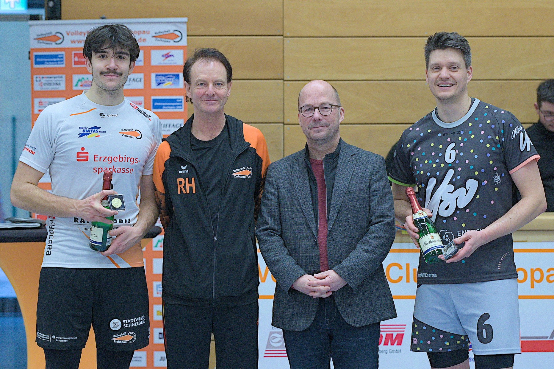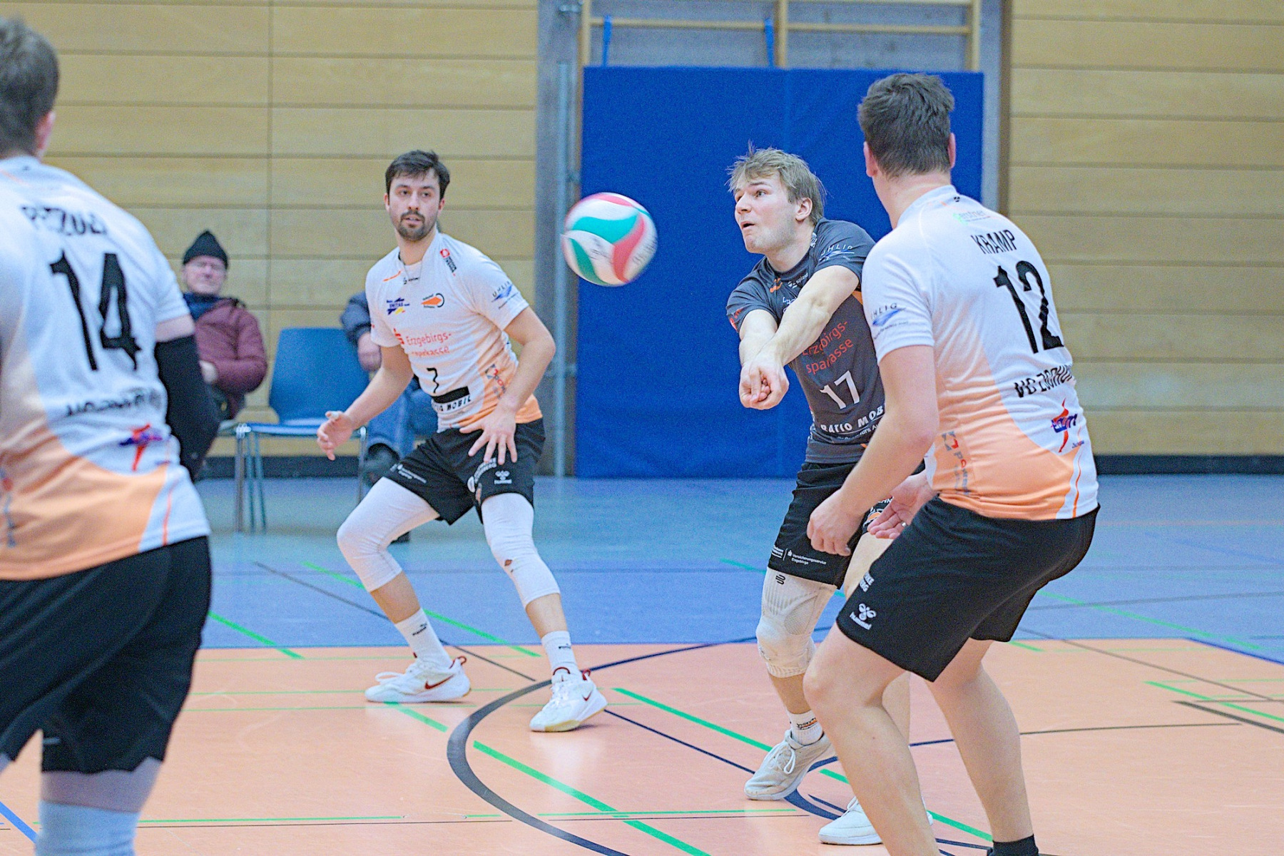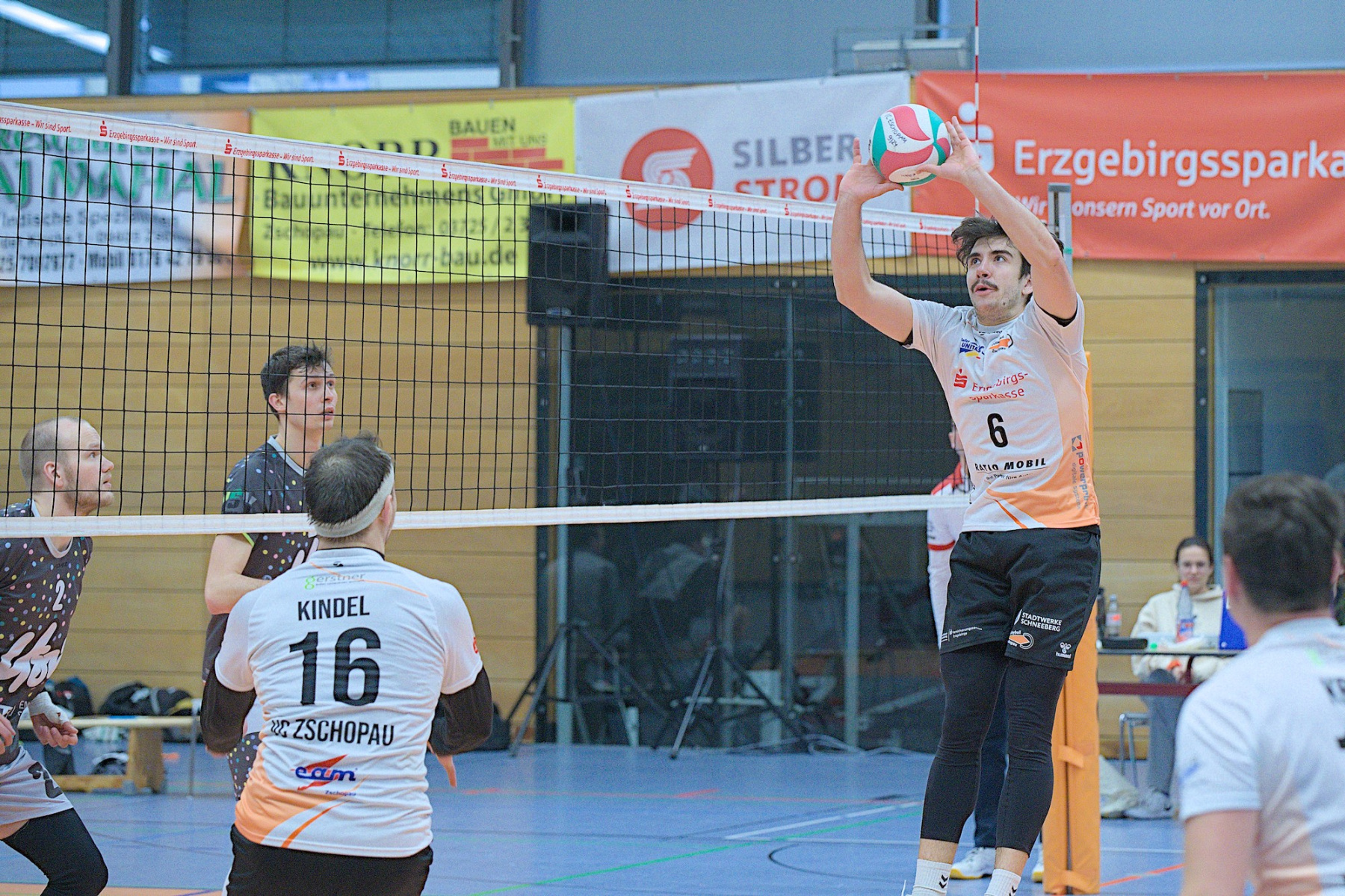 Trotz ungewöhnlicher Zeit und bevorstehendem Handball-EM-Finale versammellten sich ca. 150 Volleyballenthusiasten in der VC-Arena zum vermeindlichen Spitzenspiel der Regionalliga Ost der Männer. Mit dem USV TU Dresden reiste immerhin der aktuelle Zweite der Liga an. Was die Tabellenposition allerdings nicht aussagt ist, dass die diesjährige Liga vom Leistungsvermögen der Mannschaften her ein ziemliches Zerrbild wiedergibt. Mal abgesehen vom SV Reudnitz, der einsam seine Kreise zieht und 14 seiner bisherigen 15 Pflichtspiele gewonnen hat, kann eigentlich noch jede Mannschaft mit dem Abstiegsgeschäft zu tun haben, so ausgeglichen stellt sich das aktuell dar.